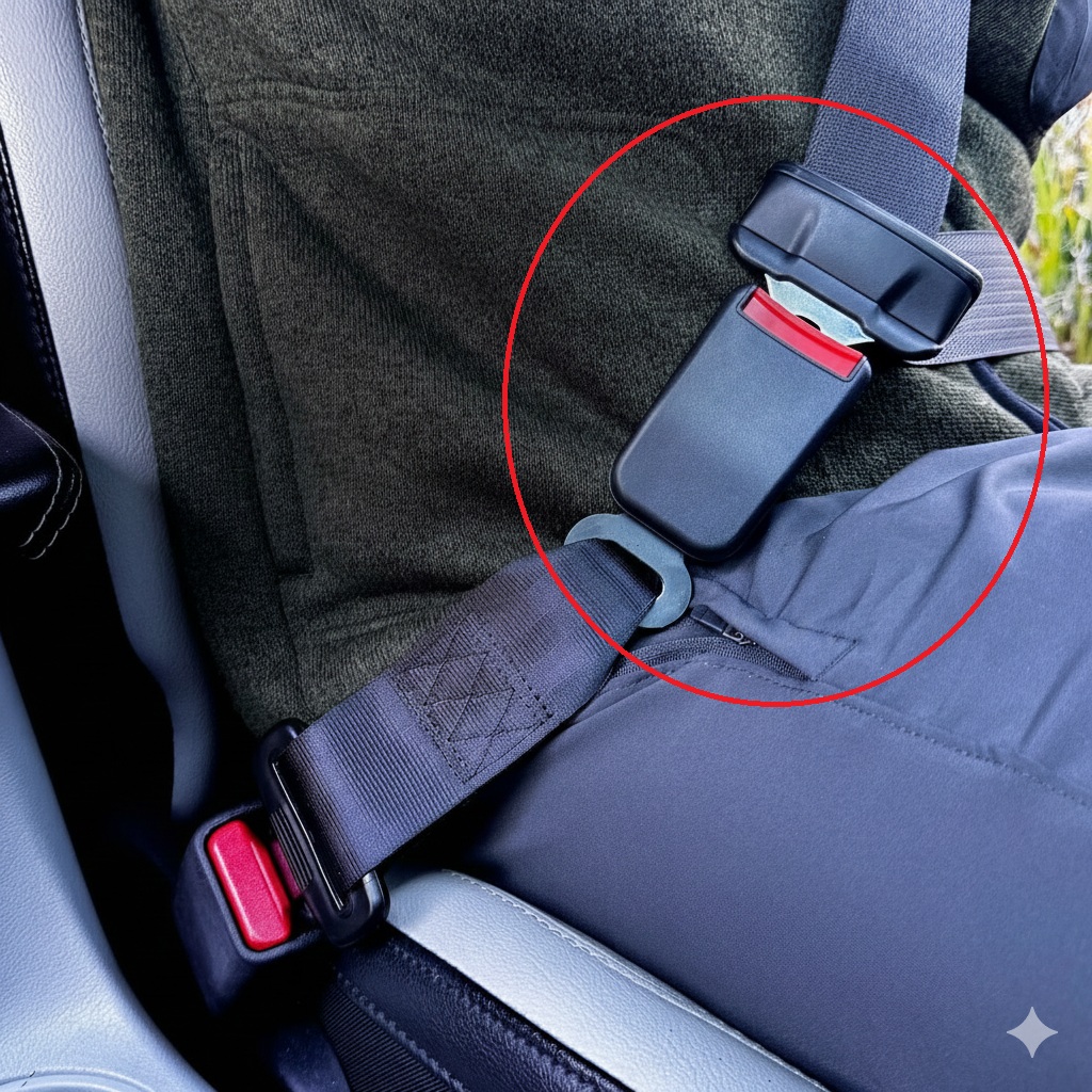 1. מיקום לקוי של החגורה: החגורה צריכה לנוח על עצמות האגן ולא על הבטן הרכה. המאריך מזיז את האבזם לכיוון מרכז הגוף, מה שגורם לחגורה לעלות לאזור הבטן. במקרה של תאונה, עוצמת המכה תופנה לאיברים פנימיים רגישים במקום לעצמות, מה שעלול לגרום לפציעות קשות ואף קטלניות.